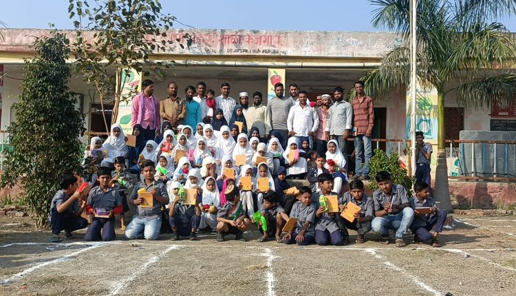 कजगाव येथील पत्रकार तथा समाजसेवक आमिन पिंजारी यांच्याकडून मुलांना शालेय वस्तू वाटप करण्यात आल्या यावेळी जिल्हा परिषद उर्दू शाळेचे मुख्याध्यापक शिक्षक तथा मौलाना शेख शफिक , व कजगाव येथील सरपंच रघुनाथ महाजन ग्रामपंचायत सदस्य सादिक मन्यार, समता परिषदचे तालुका अध्यक्ष भानुदास महाजन, मांगीलाल मोरे, दिनेश टेलर, इसाक शेख, अनवर बागवान, अमीन शहा, अनवर मन्यार, आरिफ मण्यार , आनिस मनियार वसीम खाटीक, व गावातील आदि मान्यवर मोठ्या संख्येने उपस्थित होते,