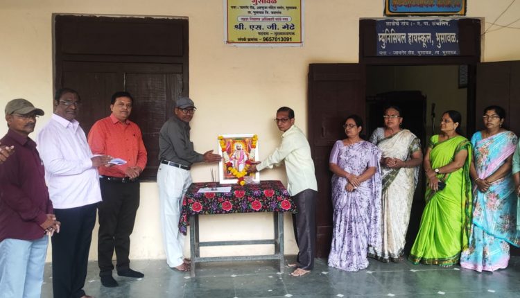 नगर परिषद संचालित. म्युनिसिपल हायस्कूल भुसावळ येथे शिवजयंती साजरी करण्यात आली. कार्यक्रमाचे अध्यक्षस्थानी शाळेचे मुख्याध्यापक एस. जी. मेढे हे होते. सदा प्रसंगी शाळेच्या सेवाजेष्ठ शिक्षिका सरला सावकारे , शालिनी बनसोडे, डॉ. प्रदीप साखरे , डि.के. भंगाळे, एस.टी. चौधरी, एन .एच.राठोड, नाना पाटील, मनोज किरंगे, प्रवीण चौधरी, जे.पी. शिरतुरे, आर.पी. सोनवणे, पूनम देवकर यांच्यासह सर्व शिक्षक शिक्षकेतर कर्मचारी विद्यार्थी उपस्थित होते.
