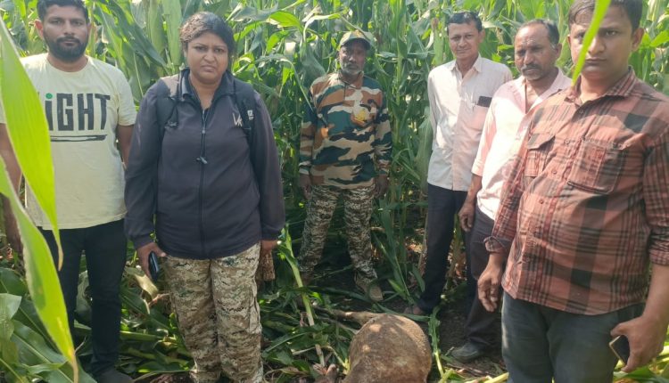 रावेर तालुक्यातील मुंजलवाडी शेत शिवारात बिबट्याने गायीच्या 3 वर्षीय वासरास केले फस्त.!!!