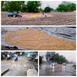 दिनांक सहा च्या सायंकाळी पाच वाजता सुमारास सुरू झालेल्या वादळी वाऱ्यासह जोरदार पावसाला सुरुवात झाली होती, तर दुसरीकडे आडात व्यापारांच्या उघड्यावर असलेल्या मका ज्वारी हे सारे झाकण्यासाठी व्यापाऱ्यांची तारांबळ उडाली होती,