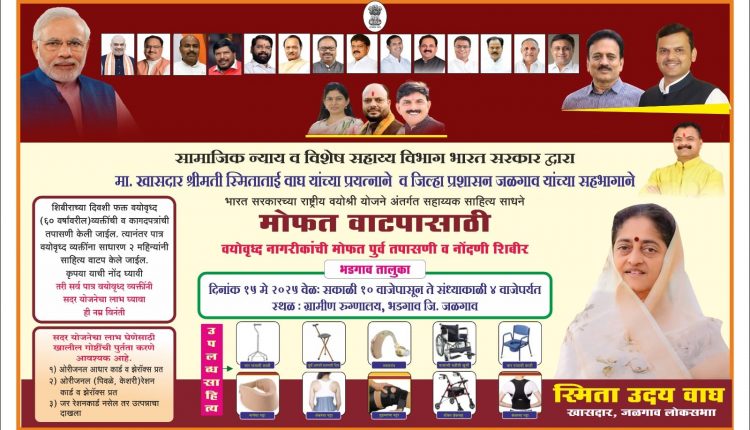तरी सदर शिबिराचा गरजू व्यक्तींनी लाभ घ्यावा असे आवाहन माननीय खासदार श्रीमती स्मिता ताई वाघ यांच्या वतीने करण्यात येत आहे