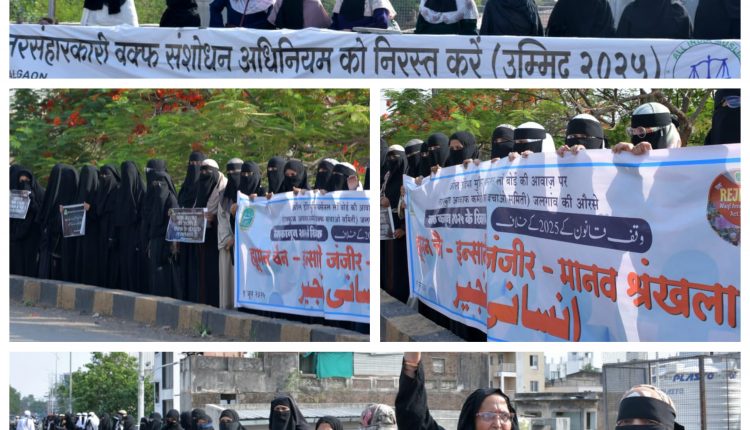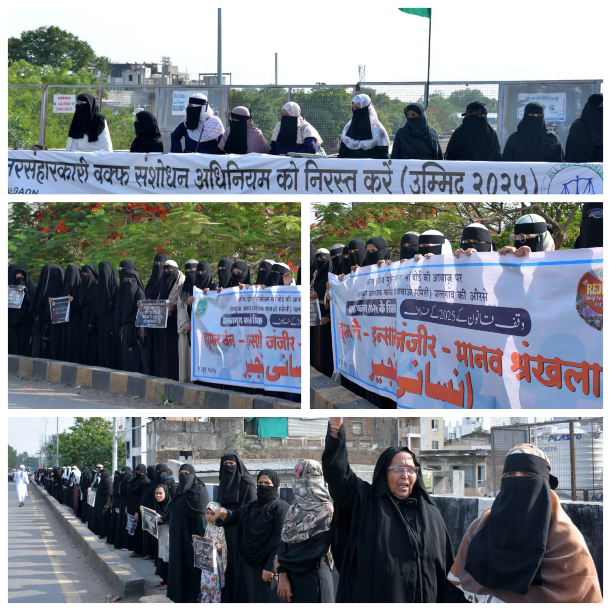 जळगाव शहराच्या मध्यभागी असलेल्या शिवाजी नगर आणि रेल्वे स्टेशन दरम्यान असलेल्या एक किलोमीटर लांबीच्या पुलाच्या दोन्ही बाजूला, म्हणजेच दोन किलोमीटर लांबीच्या मानवी साखळी बनवून सुमारे २५०० महिलांनी वक्फ कायद्याविरुद्ध आपला निषेध नोंदवला.