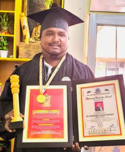 दिनांक १४ जून रोजी, दिल्ली येथे पार पडलेल्या पुरस्कार वितरण सोहळ्यात देशभरातील सुमारे ३८ मान्यवरांना मानद डॉक्टरेड पदवीने सन्मानित करण्यात आले. ही गौरवमय पदवी सुप्रीम कोर्टाचे ज्येष्ठ वकील डॉ. राम अवतार शर्मा आणि दिल्ली पोलिसातील अधिकारी किरण सेठी यांच्या हस्ते प्रदान करण्यात आली.
