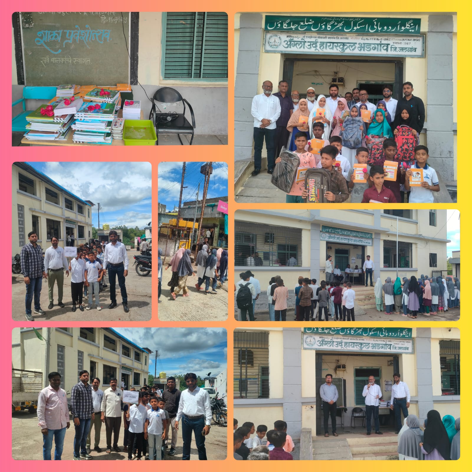 भडगाव येथील अँग्लो उर्दू हायस्कूलमध्ये नवीन शैक्षणिक वर्ष २०२५-२६ च्या प्रारंभानिमित्त प्रवेशोत्सव अत्यंत उत्साही वातावरणात साजरा करण्यात आला. ‘आज माझा शाळेचा पहिला दिवस’ या उत्साहवर्धक संकल्पनेसह विद्यार्थ्यांचे जल्लोषात स्वागत करण्यात आले.