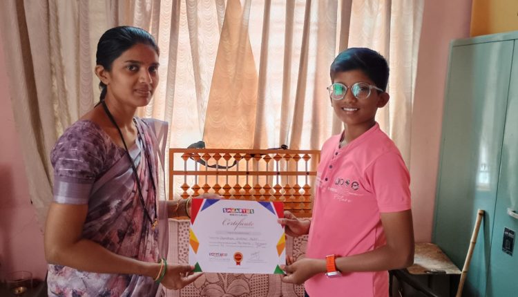 दर्शन विठ्ठल पाटील याची स्मार्टस अॅबॅकस क्लासेसमध्ये प्रथम श्रेणीत उत्तम कामगिरी.!!!
