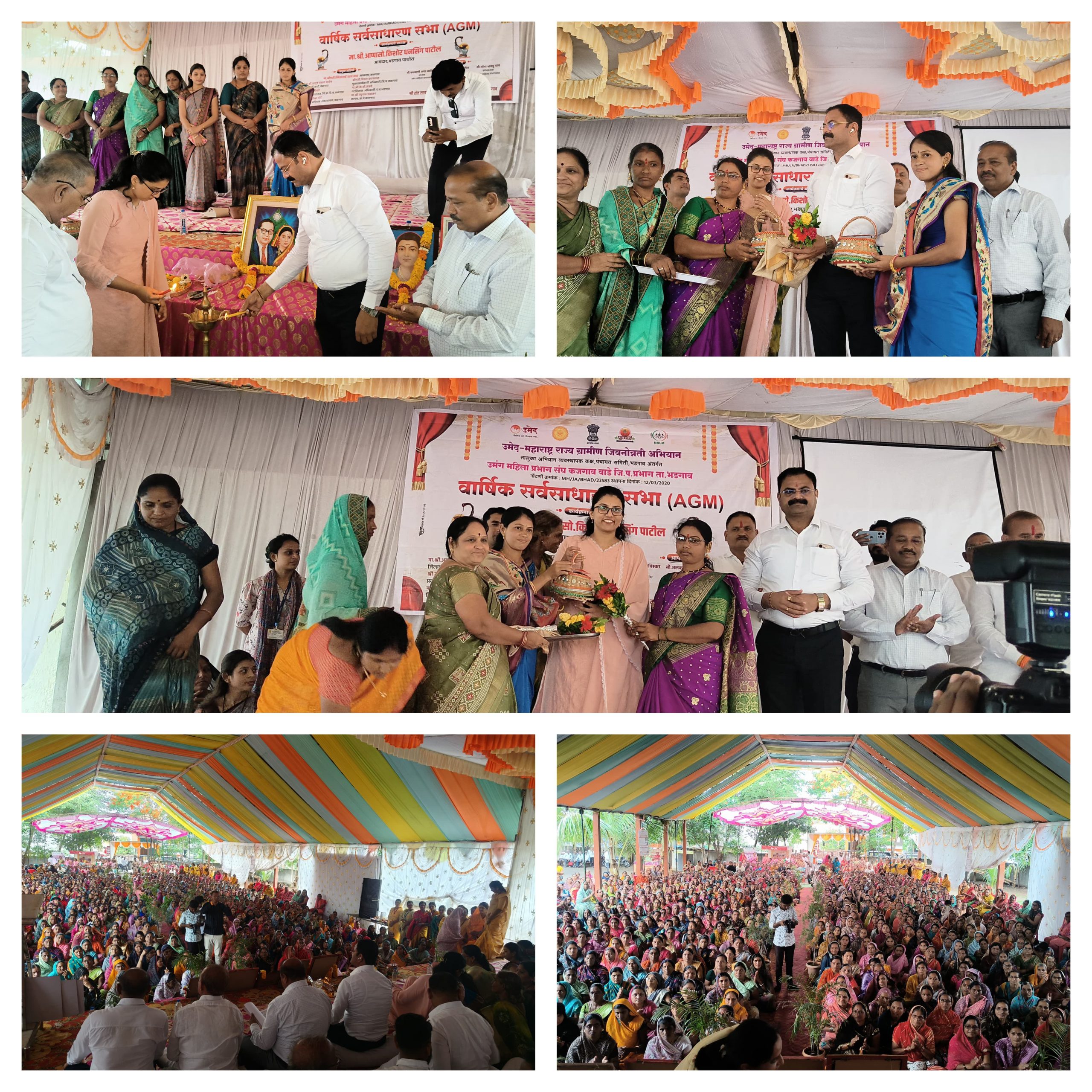 उमेद महाराष्ट्र राज्य ग्रामीण जीवनोन्नती अभियानाच्या माध्यमातून संत सावता महाराज मंगलकार्यालयात कजगाव वाडे गट जिल्हा परिषद प्रभाग सर्व साधारण सभेत महिला बचत गटांच्या सदस्यांना मार्गदर्शन करण्यात आले यावेळी आमदार किशोर पाटील व जिल्हा परिषदेच्या मुख्यकार्यकारी अधिकारी मीनल करनवाल यांनी मार्गदर्शन केले आमदार किशोर पाटील यांनी व्यावसायिक स्पर्धेत यश मिळवण्यासाठी बचत गटांना यशस्वितेसाठी कानमंत्र दिला तर मुख्य कार्यकारी अधिकारी मीनल करनवाल महिला बचत गटाचे कौतुक करून त्यांना विविध मार्गदर्शन केले यावेळी कार्यक्रमाच्या परिसरात बोदर्डे येथून मसाला, गुढे येथून हळद, पावडर, निंबु, लोणचे, पाथराड येथून कुरडई, पापड तसेच महिलांनी विविध साहित्य विक्रीचे स्टॉल लावले होते यावेळी स्टेट बँक ऑफ इंडिया आणि बँक ऑफ बडोदा यांच्या कडून पस्तीस बचत गटांना दीड कोटींचे कर्ज वितरण करण्यात आले,सामाजिकतेचे भान ठेवून गरजू महिलांना जीवन आवश्यक वस्तू व किराणा वाटप बचत गटांच्या माध्यमातून करण्यात आले त्यांचे देखील आमदारांनी व मुख्यकार्यकारी अधिकाऱ्यांनी कौतुक केले
