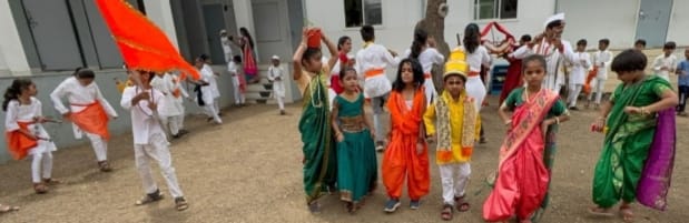 बालकांनी वारकरी संप्रदायाचा वारसा जपून वेगवेगळ्या वेशभूषेतून नृत्य,अभंग गात पालखी सोहळा पारंपारिक टाळांच्या गजरात शाळेच्या प्रांगणात काढण्यात आला.विठ्ठल रुक्मिणी यांचे औक्षण पूजन करून कार्यक्रमाची सांगता झाली.याप्रसंगी शाळेचा अध्यक्षा श्रीमती नेवले, प्राचार्या गायत्री गुजराती, उपप्राचार्या स्मिता मोरे व शिक्षक कर्मचारी उपस्थित होते.