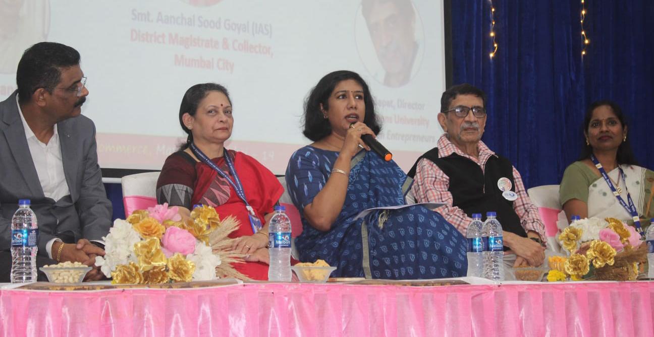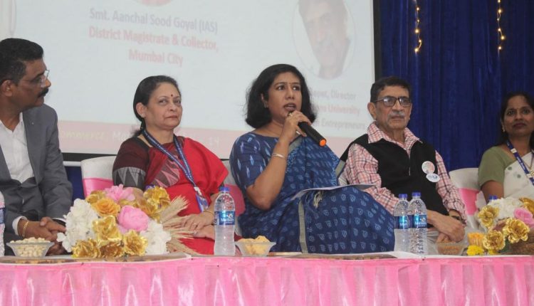 मुंबई (गुरुदत्त वाकदेकर) : “उंच झेप घेण्यासाठी संधीचे सोने करून वेगवेगळी कौशल्ये आत्मसात करा. समाज माध्यमांवर वेळ वाया घालवण्याऐवजी मोबाईलचा उपयोग शासकीय योजनांची माहिती मिळवण्यासाठी करा. नकारात्मकतेवर मात करून स्वतःला घडवा,” असे प्रबोधनपर आणि प्रेरणादायी विचार मुंबई शहराच्या जिल्हाधिकारी आंचल गोयल यांनी विद्यार्थ्यांना संबोधित करताना व्यक्त केले.