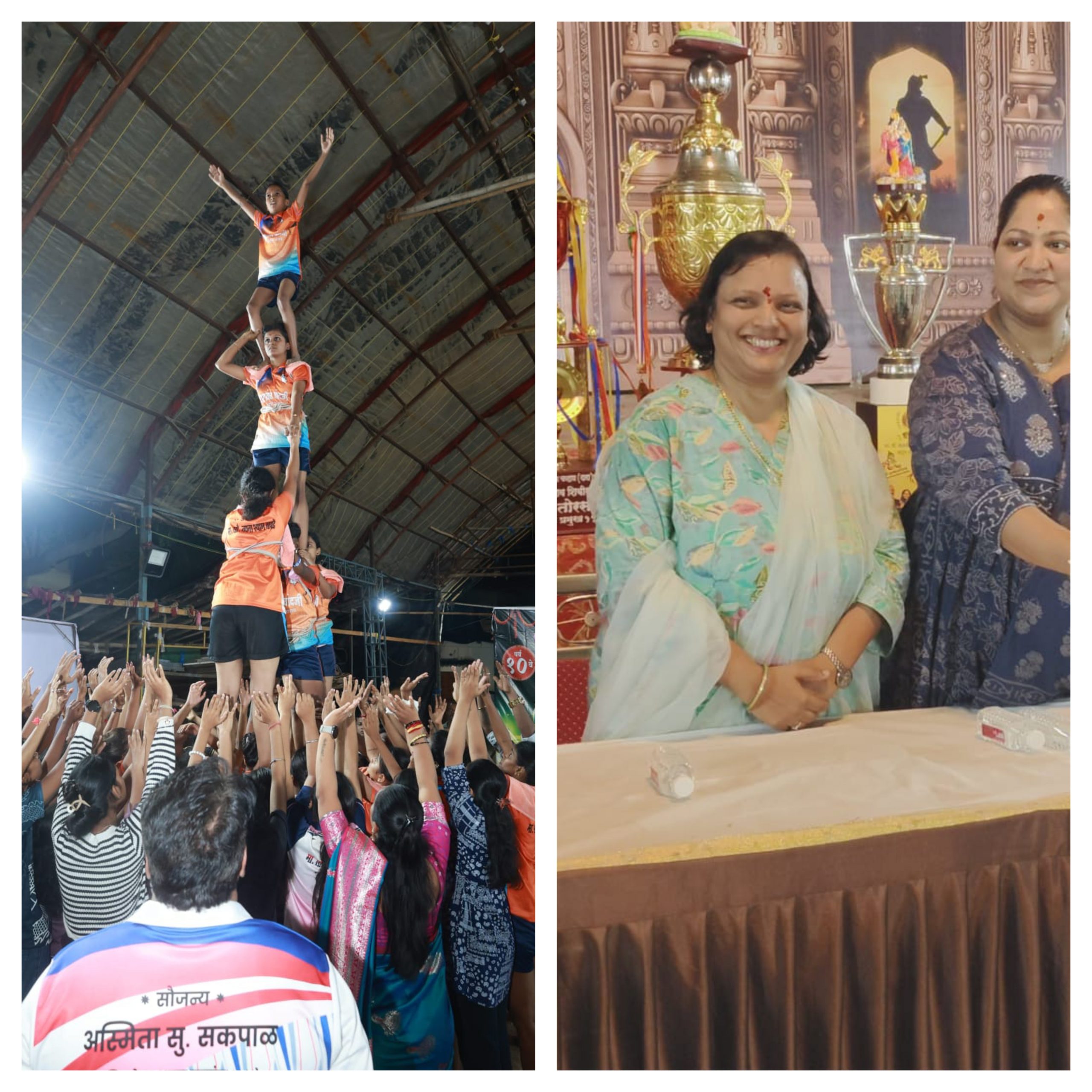 यानंतर मोठ्या गोपिकांनी लहान गोपिकांना खांद्यावर घेऊन घातलेली प्रदक्षिणा आणि नंतर आत्मविश्वासाने दिलेली ४ थरांची सलामी आणि ५ थरांची सुसंघटित रचना, हे दृश्य प्रेक्षकांसाठी रोमहर्षक ठरले. टाळ्यांचा कडकडाट आणि “रणरागिणीं”साठी उस्फूर्त जल्लोष वातावरणात भर टाकत होता.
