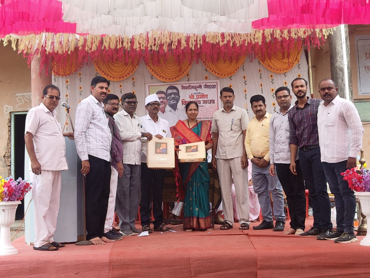 सेवानिवृत्ती निमित्त कलाशिक्षक पी. व्हि. जाधव यांचेसह विदयालयामार्फत सपत्नीक सत्कार करण्यात आला. श्री. शिवाजी महाराज यांची राज्यभिषेक प्रतिमा व ड्रेस, साडी देऊन सत्कार करण्यात आला. तसेच उपस्थित नातेवाईक,