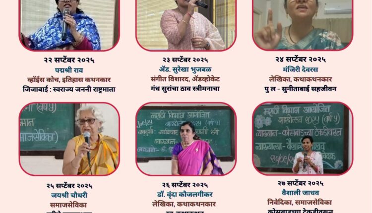 पाचव्या माळेत डॉ. वृंदा कौजलगीकर, लेखिका व कथाकथनकार, यांनी ‘स्व-कथाकथन’ सादर केले. त्यांनी स्पष्ट केले, “स्व-कथाकथन म्हणजे एका स्त्रीने स्वतःच्या अनुभवांवर, भावविश्वावर, संघर्षांवर आणि आत्मशोधावर आधारित कथन करणे. हे तिच्या व्यक्तिमत्त्वाचा, विचारांचा आणि सामाजिक स्थितीचा आरसा ठरते.”