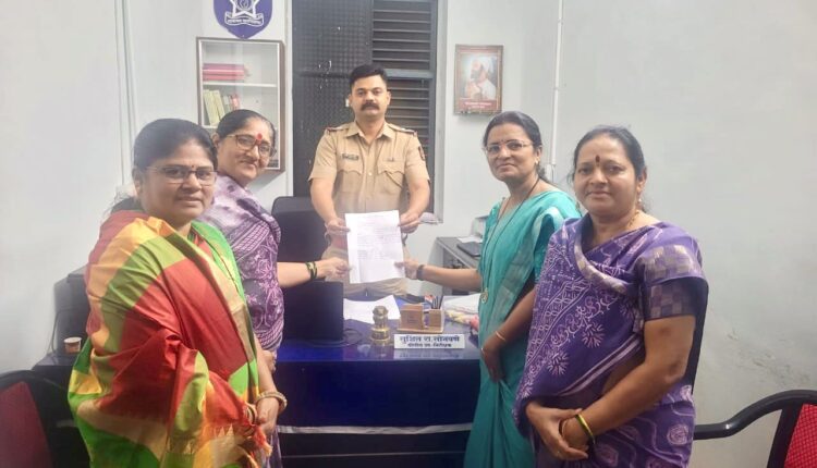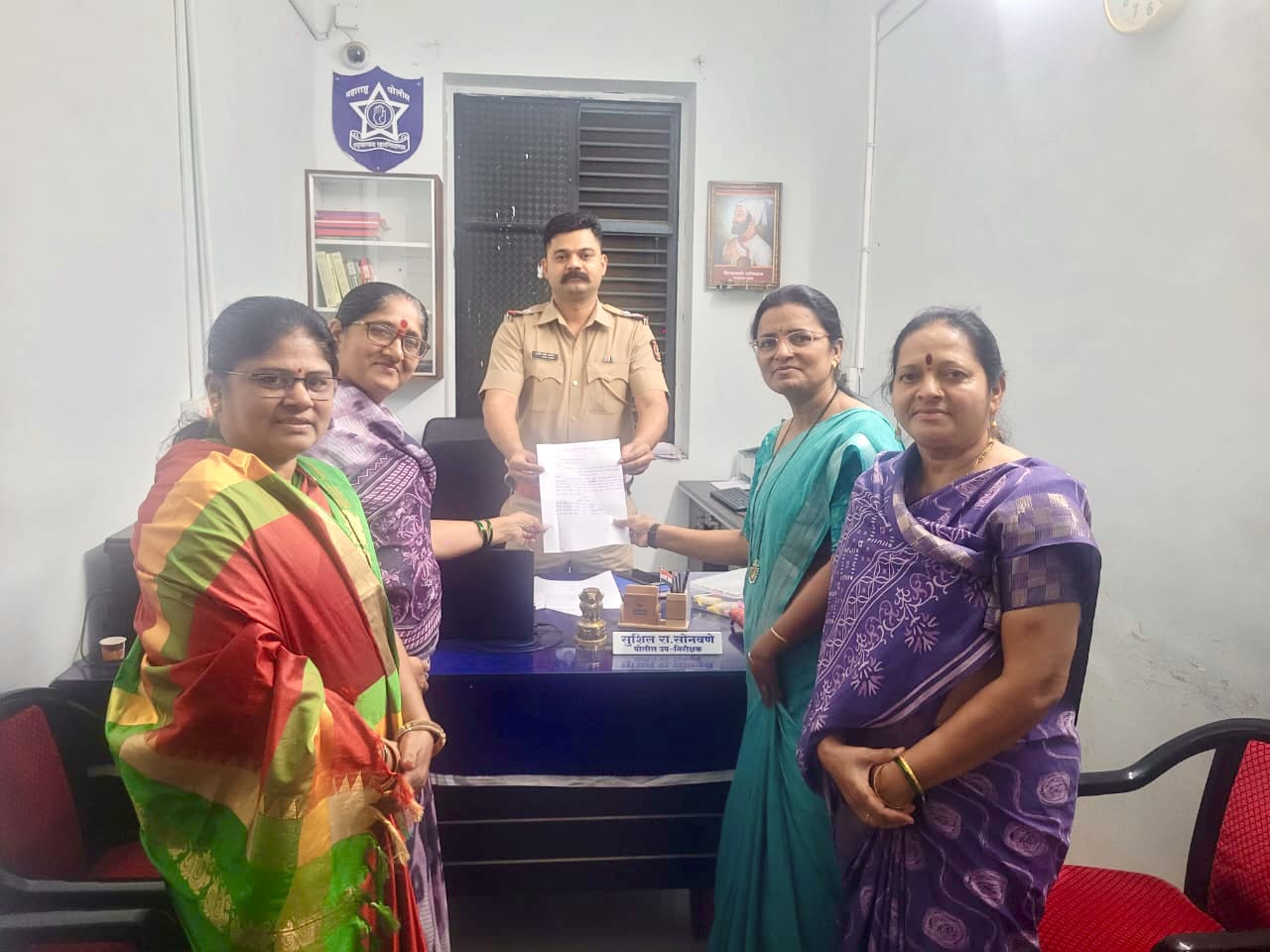 तसेच दोषींना कठोरात कठोर शिक्षा व्हावी अशा घटना वारंवार घडतात यास वेळीच पायबंद घातला जाईल असा पद्धतीची कडक कारवाई व्हावी. सदर बाबतीत नागरिकांनीही सतर्क राहत पोलिस विभागास माहिती मिळताच सहकार्य करा. असे आवाहन अखिल मराठा दामिनी पदाधिकारी मा. नगरसेविका योजना पाटील, सरला पाटील, डॉ. सुनिता मांडोळे, रेखा पाटील आदींनी पोलिस उपनिरीक्षक सुशिल सोनवणे यांना निवेदन प्रसंगी केले आहे.