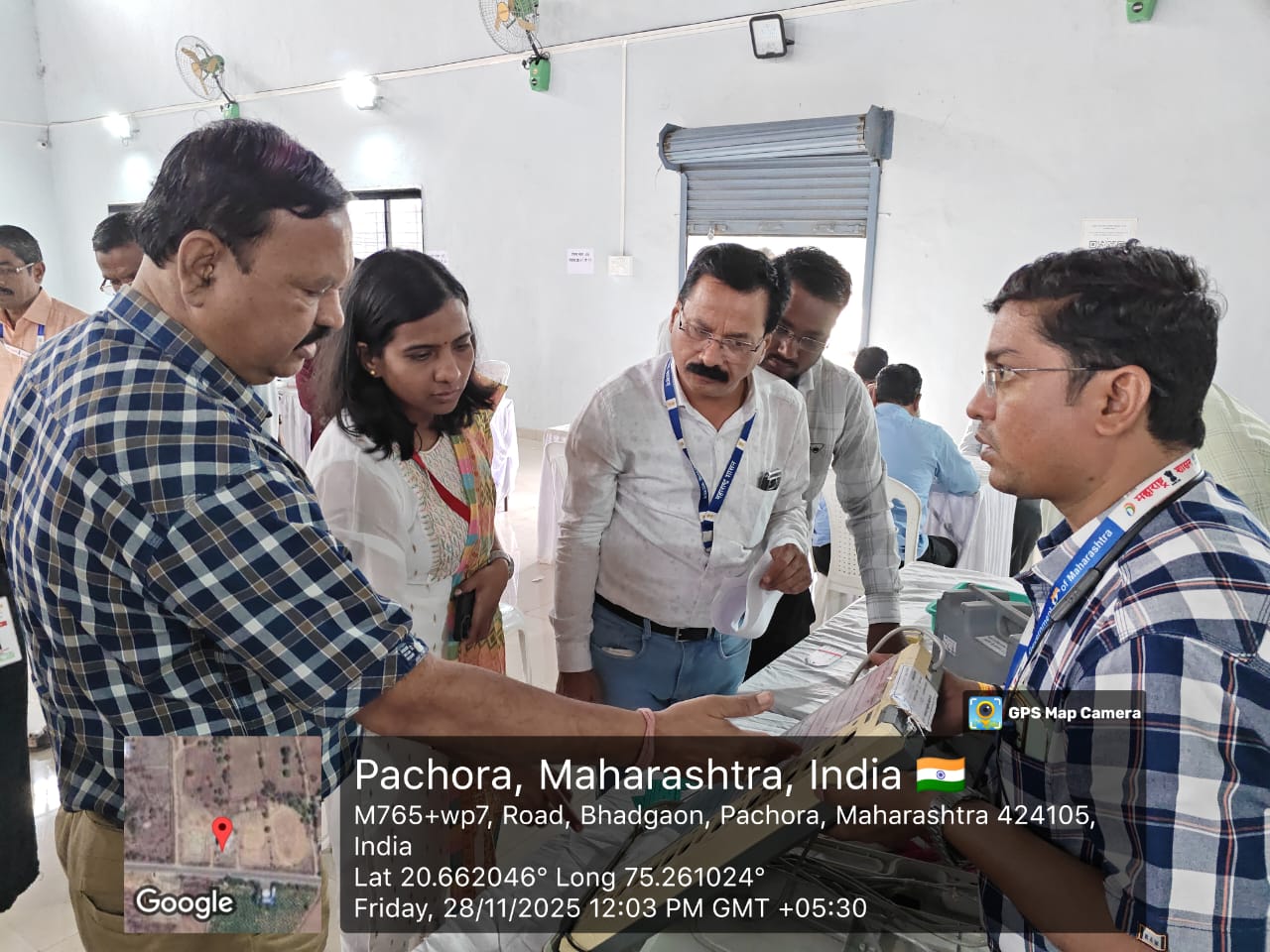 भडगाव नगर परिषद सार्वत्रिक निवडणूक २०२५ अनुषंगाने दिनांक २८ नोव्हेंबर २०२५ रोजी निवडणूक निरीक्षक श्री देवदत्त केकाण यांनी तालुका क्रीडा संकुल, भडगाव येथे भेट देऊन ईव्हीएम मशीनच्या सेटिंग व सीलिंग प्रक्रियेची पाहणी केली. निवडणूक निर्णय अधिकाऱ्यांच्या उपस्थितीत झालेल्या या तपासणीत त्यांनी संबंधित अधिकाऱ्यांकडून सविस्तर माहिती घेतली व संपूर्ण प्रक्रिया सुरक्षित, पारदर्शक आणि नियमांनुसार होत असल्याची खात्री केली.