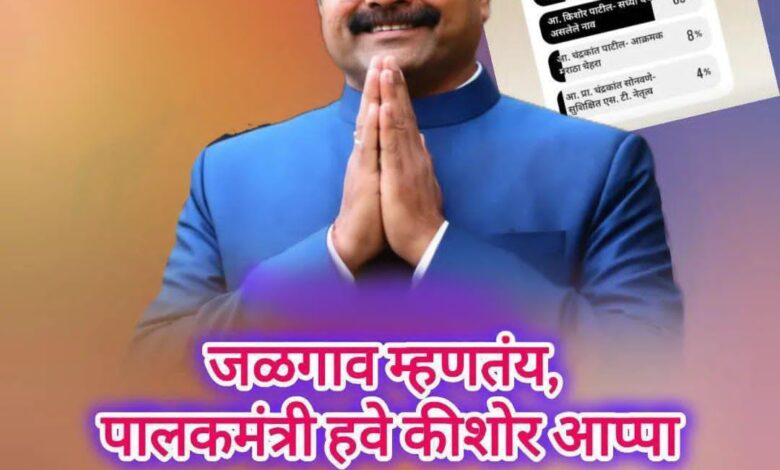 जिल्हाभरात अचूक माहिती मांडणाऱ्या आणि विश्वासार्हतेसाठी ओळख असलेल्या एका सोशल मीडिया सर्वेक्षणातून महत्त्वाचा निष्कर्ष समोर आला आहे. या सर्वेक्षणानुसार किशोर आप्पा पाटील यांना पालकमंत्रीपदासाठी तब्बल ६९ टक्के जनतेची पसंती मिळाली आहे. हा आकडा केवळ मतांचा नव्हे, तर जनतेच्या विश्वासाचा आणि अपेक्षांचा स्पष्ट कौल मानला जात आहे.