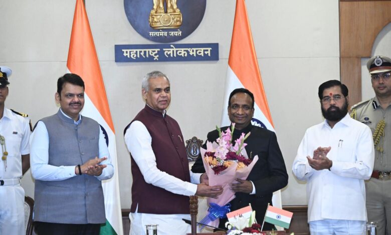 मुंबई (गुरुदत्त वाकदेकर) : लोकभवन येथील कॉन्फरन्स सभागृहात राज्यपाल आचार्य देवव्रत यांच्या हस्ते महाराष्ट्र लोकसेवा आयोगाच्या अध्यक्षपदी विवेक लक्ष्मण भीमनवार यांना पद व गोपनीयतेची शपथ देण्यात आली. या शपथविधी सोहळ्यास मुख्यमंत्री देवेंद्र फडणवीस आणि उपमुख्यमंत्री एकनाथ शिंदे प्रमुख उपस्थित होते. संपूर्ण कार्यक्रम अत्यंत शिस्तबद्ध, औपचारिक आणि सन्मानपूर्ण वातावरणात पार पडला.